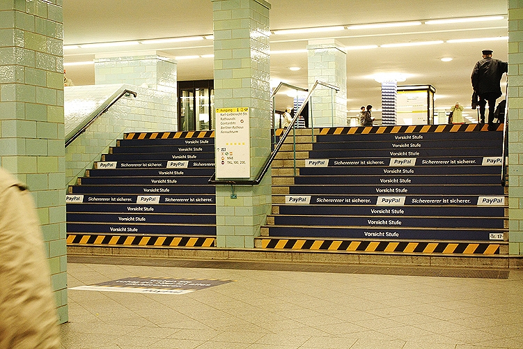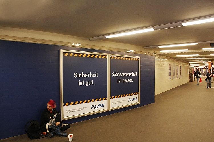 Und so lief das 2010 immer noch. Das Medium: Der gesamte Bahnhof Friedrichstraße. Der Kunde: Paypal. Die Agentur: DDB Tribal und wir. Die Formate: alle, die uns einfallen. Der DU-Schluß: In drei Tagen.